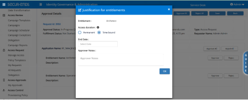 Access request templates will now include time-bound fields along with a justification section, similar to the existing time-bound functionality for entitlements.