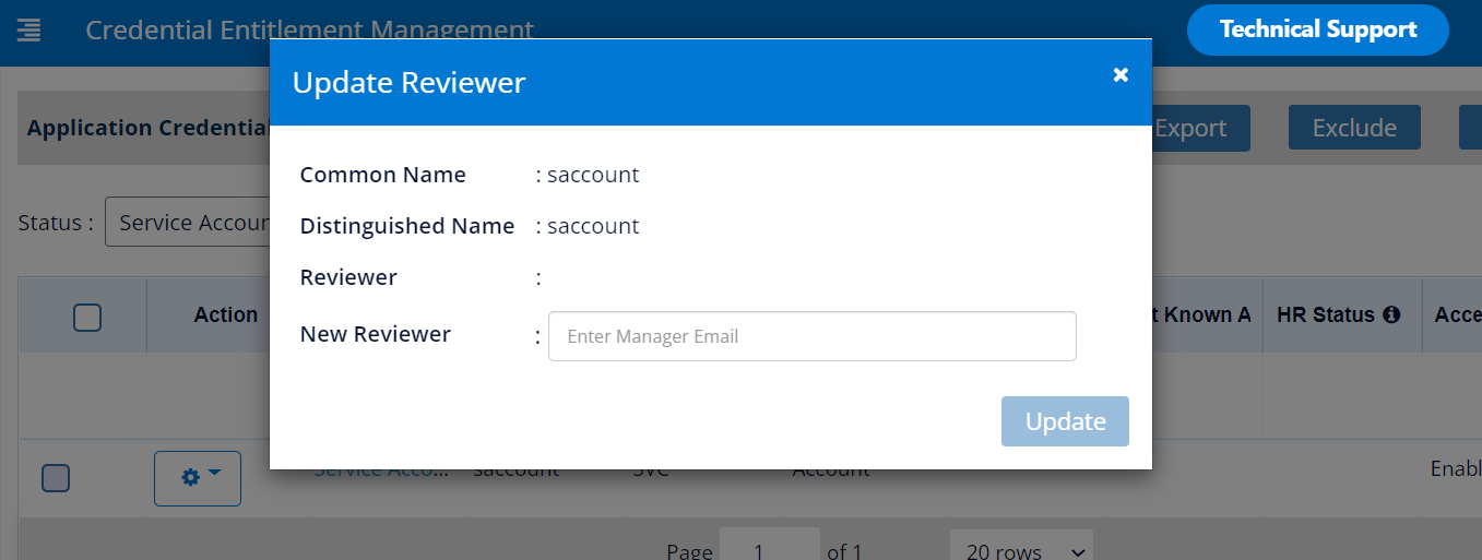 - Once moved to the Service Account category, a reviewer will need to be assigned for the Service Account.