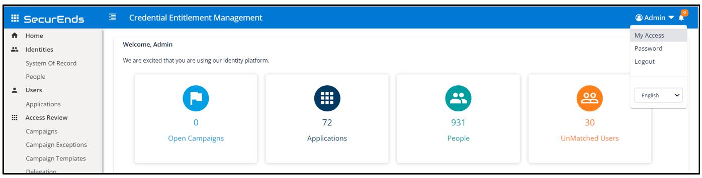 - Use Case: Allows the ‘My Access’ feature to be hidden in the logged in user’s menu at the top right of the screen